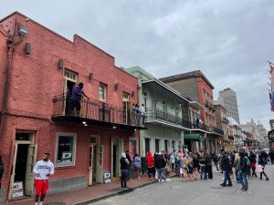 Five Flags Speedway Asphalt road course Lifetime Track #2,687 Dothan Motor Speedway Dirt oval Lifetime Track #2,688 Atlanta Motor Speedway Asphalt oval Lifetime Track #23 (re-visited today) THE EVENT Editor’s note: A trackchasing weekend doesn’t get much more diverse than this. First, I was able to spend a day in the French Quarter of New Orleans. What a restaurant town! Then a grand Trackchasing Tourist Attraction with the USS Battleship Alabama. From there a novelty event at the famous Five Flags Speedway and a night at one of the few oval tracks I have not seen…this time in Alabama. Finally, a NASCAR Cup race in Atlanta. I pretty much covered every base! I AM A TRACKCHASER. My name is Randy Lewis (above with Carol at one of our many Trackchasing Tourist Attractions, this time at the Cadillac Ranch in Amarillo, Texas. I live out in San Clemente, California. We’re only 74 miles north of the Mexican border. I’m not sure a person could pick a more inconvenient location in the continental United States if they wanted to be a world-class trackchaser. My residential location virtually assures the idea that I must fly to virtually every track I visit. I am a “trackchaser”. I trackchase. Have you ever in your life heard of “trackchasing”? I didn’t think so. Trackchasing for me is all about three things. First, I enjoy auto racing. Secondly, my hobby requires a good deal of overnight travel. When I venture out to see a race at a track I’ve never seen before I do not want my trip limited to racing only. The very last thing I want when I’m done trackchasing is to have memories of only racing. I want to take some time to see the local attractions of wherever I might be visiting. Those visits in many cases will provide more long-lasting memories than whatever I saw on the track. Finally, I want to create a logistical plan that allows me to accomplish the two points mentioned above without depleting my retirement account. That’s trackchasing for me. Hundreds of trackchasers have stopped for a moment to create their own personal trackchasing list. I think that is great. However, I will tell you that no one has ever taken trackchasing more seriously than I have. Do I have any data to back up that assertion? I do. To date, I have seen auto racing in 85 countries at more than 2,680 different tracks. Does that sound serious to you? I’ve been able to see the world doing this. If you’re interested in exactly what I’ve been able to experience all around the U.S. and the world I recommend you click on this link. Trackchasing Tourist Attractions After each and every event that I attend I post a YouTube video, a SmugMug photo album and a very detailed Trackchaser Report about the experience on my website at www.randylewis.org. My trackchasing contributions generate a good deal of interest in what I am doing. My YouTube channel (ranlay) has more than 1.3 million views. My website gets more than 20,000 views every month. Because I have seen racing in 85 countries at this point I am considered the World’s #1 Trackchaser. That’s good enough for me. Now I encourage you to drop down a few spaces and read about today’s trackchasing adventure. As you discover what went on at this track just think about the idea that I’ve done this nearly 2,700 times. I don’t mind admitting I am addicted to the hobby of trackchasing. It’s just fun! If you’re interested in looking back and seeing where I’ve been the following link is for you. If you’ve got a question, comment or whatever please leave it at the bottom of this report. It’s very easy to do. Or you can visit me on Facebook. Thanks! FOREWORD Saturday/Sunday, March 20/21, 2021. I guess over the years trackchasing has changed a little bit for me. Back in the day, a successful trip would have me seeing a permanent oval track race on Friday, Saturday and probably on Sunday. I called that type of trackchasing trip a “classic” trip. In today’s trackchasing world I have seen all but about 20 permanent oval and road course race facilities in the United States and Canada. Now, much of my trackchasing is focused on one-of-a-kind events also known as novelty racing. That’s certainly not as good as seeing those high banked dirt bullrings that I used to feast on. But that’s what I’m left within the hobby today. This weekend’s trip is nothing if not diverse. I’ll plan to see one of those aforementioned novelty races, one of my final permanent oval track conquests and a NASCAR Cup race. Oh yeah. I am headed to one of my two most favorite restaurant cities in the U.S., New Orleans. I’ll tell you more about that as we go along. I also figure to add to my list of Trackchasing Tourist Attractions. When I left California I didn’t know where that would be but I knew it would be. It’s March and I’m heading to New Orleans. About three years ago I was doing the same thing. Just when we were about to land in New Orleans the pilot came over the P.A. and wished everyone a happy Mardi Gras weekend. Mardi Gras? I had no idea. I had always wanted to visit the area during Mardi Gras. I immediately got in my car and found the Mardi Gras parade route. I was a rookie with Mardi Gras but had a fantastic time with the event and all of the different parades. I liked it so much I brought Carol to New Orleans for Mardi Gras the very next year. Now, in 2021, Mardi Gras has been canceled because of Covid. I hope that Carol and I get to see Mardi Gras in the near future once again. FRIDAY Today was a “travel” day. I figured if I was going to spend the entire day getting to the race in Pensacola, Florida on Saturday I might as well stop by in a city that I really enjoyed for a quick review today. That would be New Orleans. I used a discount airline to fly from Los Angeles to New Orleans. Discount airlines offer cheap fares but charge “a la carte” for things like a carry-on bag, a checked bag, printing a boarding pass or buying a Coke.