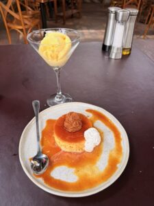 By the time I got there, it was nearly 2 p.m. It was past lunch for the most part, but too early for dinner. I began with a Pisco Sour, which is the national drink of Peru and is also very popular in Paraguay. Then I had a steak and fries, and one of the most delicious and attractive dessert orders: flan with a side of vanilla ice cream. If you get to this part of Paraguay, don’t miss the Low de Osvaldo restaurant.