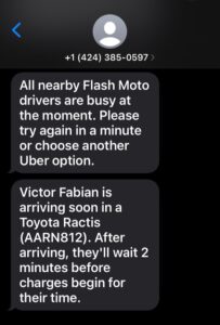 I ordered Uber’s “Flash Moto” option. I waited and then I waited some more. Finally, Uber came back and said there were no units available. What would I do now? I would figure it out.