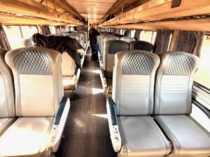 There are three general categories of seating on an Amtrak train. The first is an individual seat, pretty much like the seat you might have on an airplane, but it’s a little bit better on the train. This is the cheapest way to travel on Amtrak.