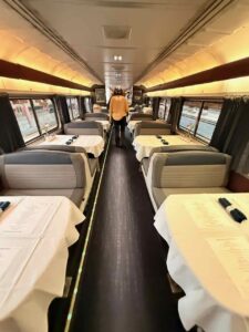 Plus, and this is very important, those restaurant dinners are a great way for the two of us to spend an hour or so catching up on the day’s events. Often, she gives me an update on her chores and what needs to be hired out around the house. I update her on the trips I’m planning for her. Yes, everybody does this stuff differently. This is how we do it, and we’ve been married a long time! Now back to the train trip! Oh, forget this. I have credit card combinations that give me a 27% discount at fine dining restaurants.