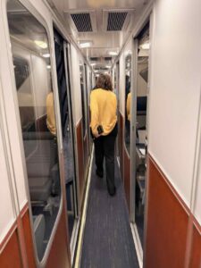 The train swayed a lot. I was told that was because the tracks were old. We didn’t have any significant delays. Most of the stops lasted about 3-5 minutes. Some were longer, with places to get off the train and stretch your legs. Smoking was not allowed on the train. The smokers had their opportunities during these 10-15-minute stops.