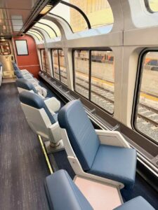 Just beyond the dining car was the observation car. The observation car was open 24/7. All passengers can sit in any seat in the observation car and watch the world go by.