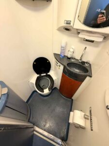 A roomette does not have a dedicated bathroom. A traveler in a roomette will have both a shared toilet and a shared shower. Those facilities are small! I’m 6‘3“ tall. The roomette space didn’t leave much room for anything other than me!