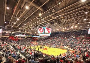 My free ticket was in a great location. I sat down in my really nice lower bowl seat inside the University of Dayton Arena. I found the place and the fan support impressive. The arena was packed to the gills with fans. The people sitting next to me also stared me up and down.