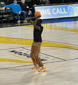 Who wears a stovepipe hat at a basketball game?