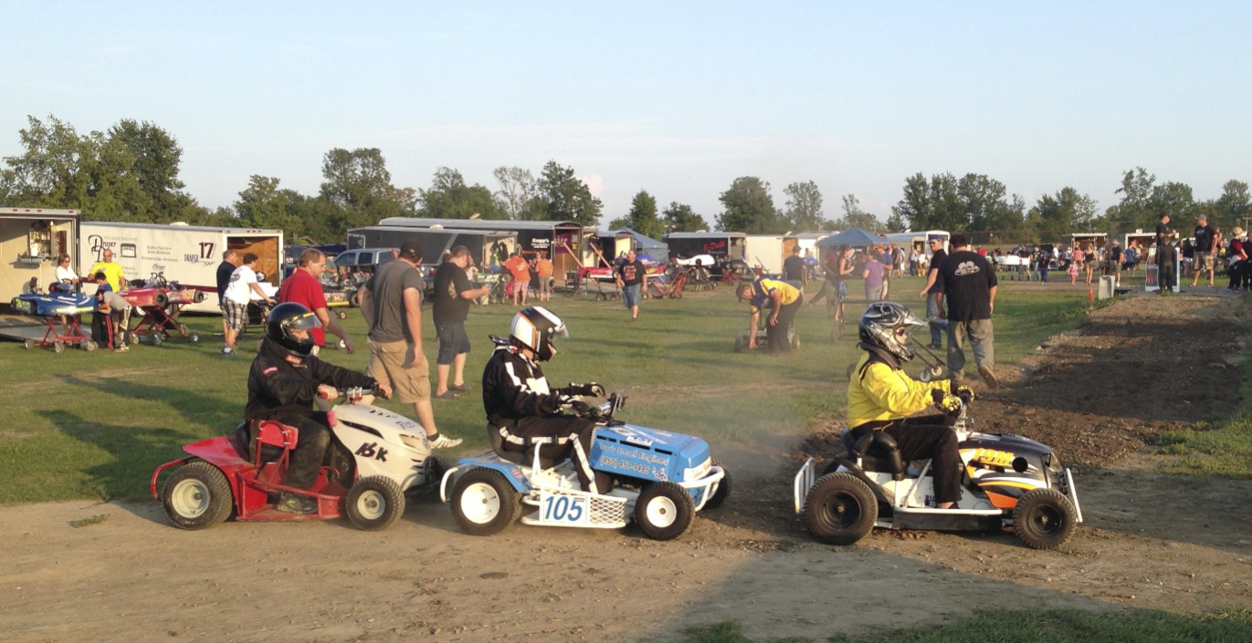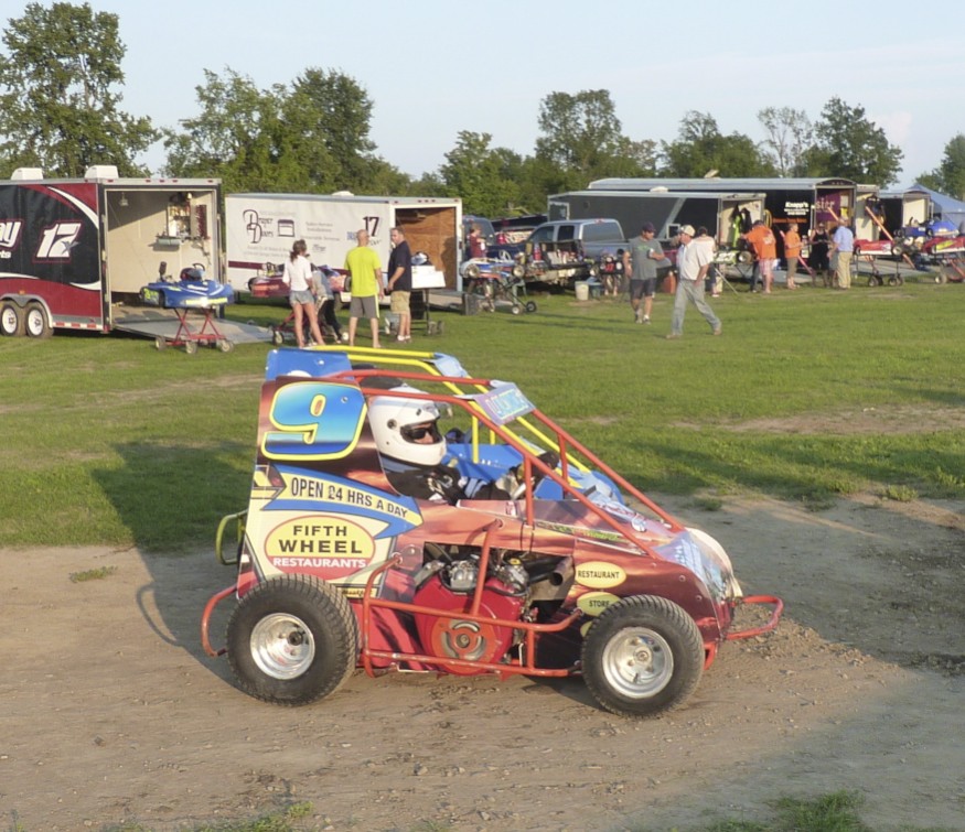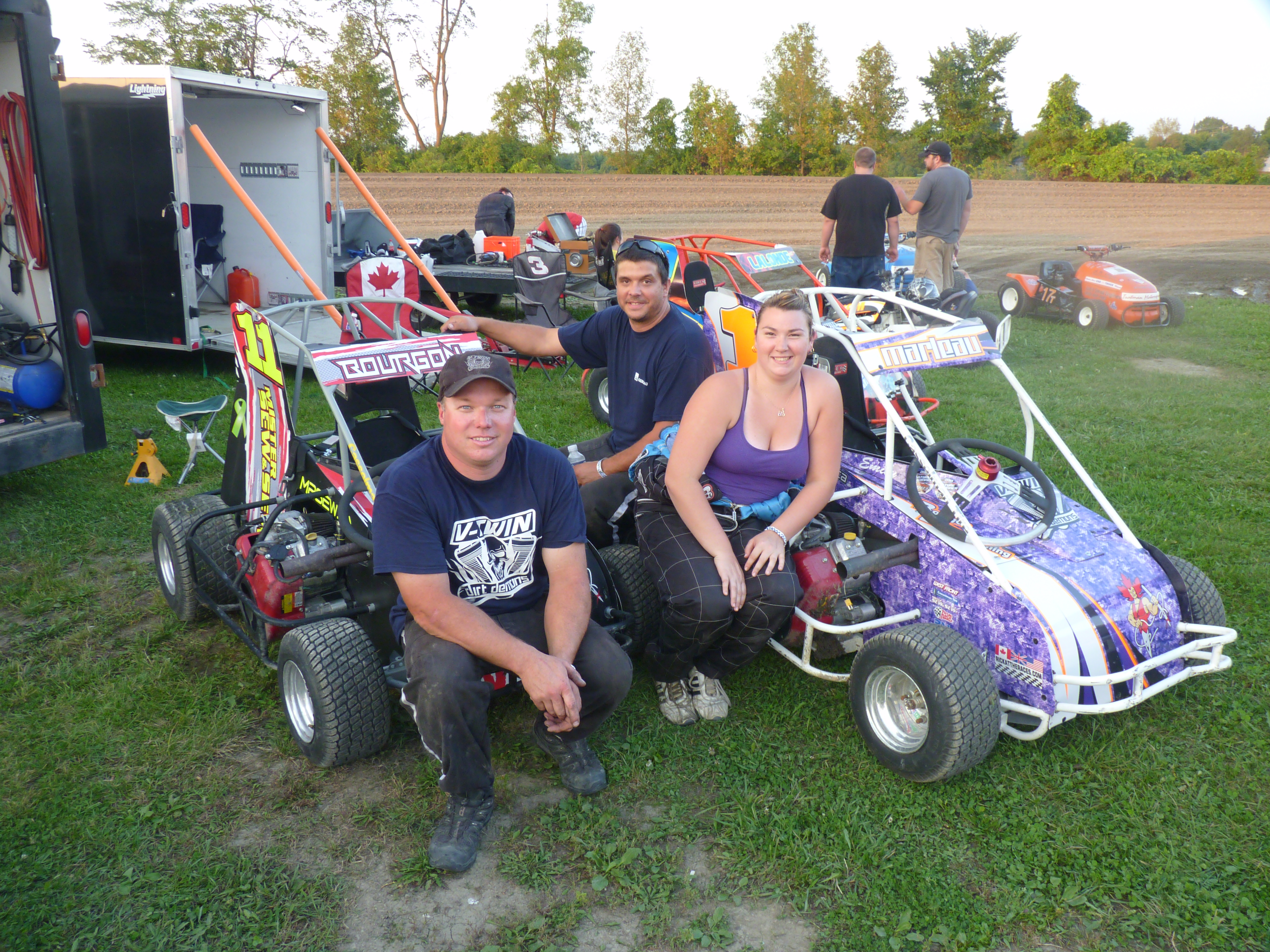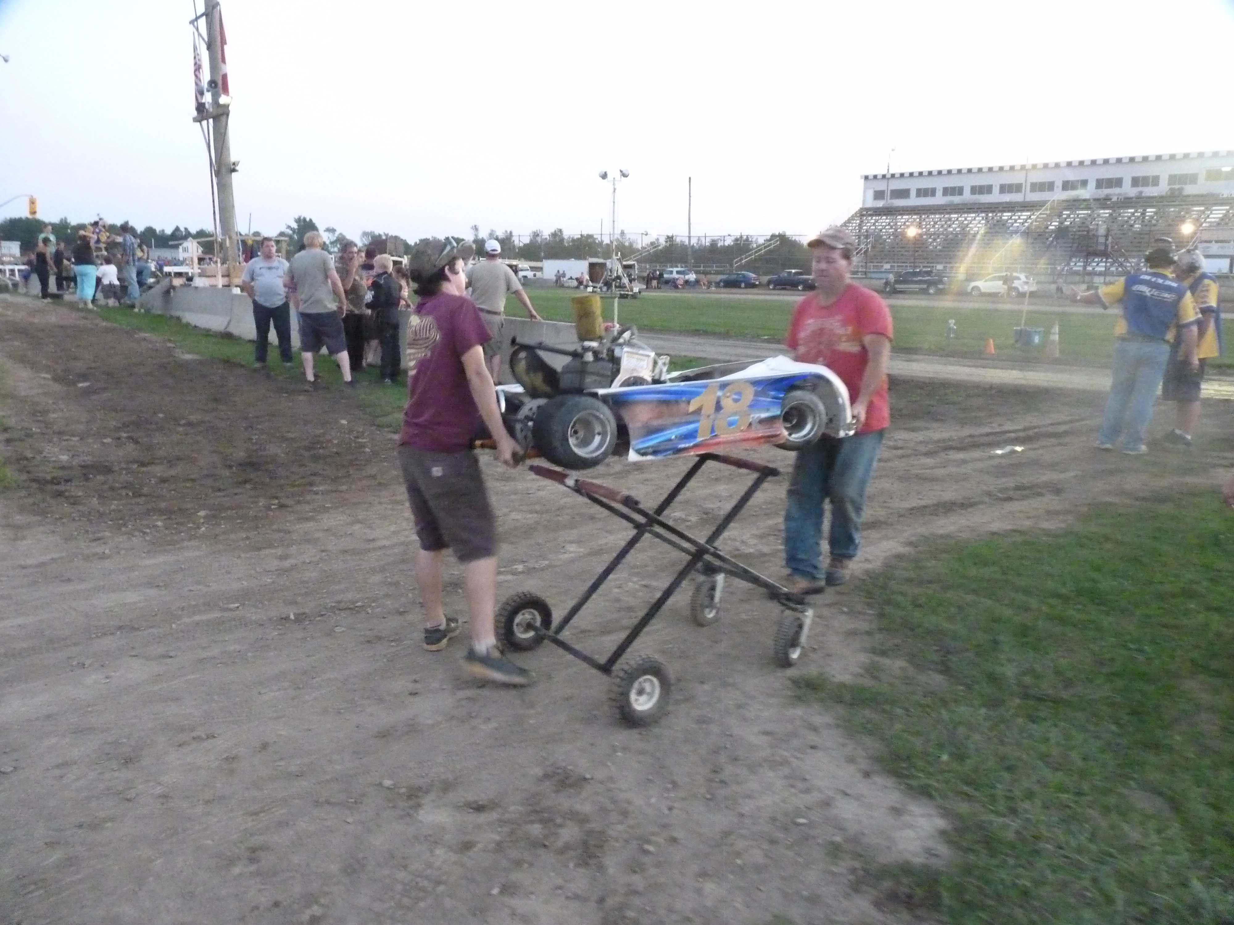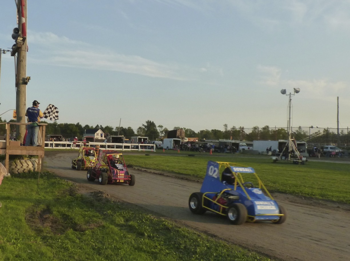 Tonight’s racing would take place on what is commonly referred to as an inner oval. The mostly flat dirt track was quite racy. Admission allowed me full run of the pit area at no extra charge. In fact, the main grandstand to Brockville’s big track was closed for this event. This arrangement allowed up close and personal observation and interaction with the race cars and competitors. It was all done very well. I have just one suggestion for improvement. They are going to need a bit stronger fencing coming out of fourth turn. If one of the Dirt Demons or anybody else gets majorly out of shape someone is going to catch a race car, or lawnmower, in the teeth. That wouldn’t be good.