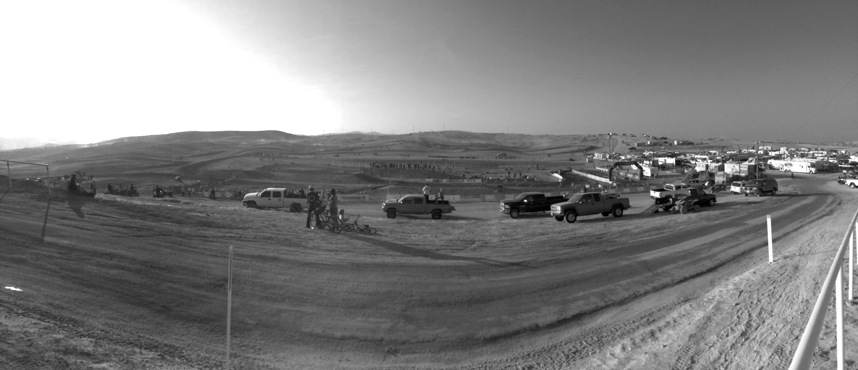 What happened to the off-season?…………more in “The Details”. I don’t like using up (ruining) my stuff…………more in “The Details”. Gas prices…it’s all relative. ………..more in “The Details”. This is a little embarrassing………….more in “Race Review”. What is a UTV vehicle?………….more in “Race Review”. The professionalism exhibited by any class of racing carries no weight with the trackchasing hierarchy. …………more in “Race Review”. This was one long course………..more in “Race Review”. What happened to the off-season? I woke up this morning at home in San Clemente. I spent the day in Taft, California before staying overnight in Portland, Oregon. The next afternoon after spending the day in Junction City, Oregon I returned home to San Clemente, California. This is January. Isn’t that supposed to be part of trackchasing’s “off-season”? Normally January and February are almost exclusively reserved for ice racing. However, with the advent of global warming or whatever you choose to call it ice racing is on the wane and has been for a few years. No freezing temps, no ice. No ice, no ice racing. In California it’s been dry. Everything is brown that isn’t irrigated. It’s not often I can capture a California kart track and a California road course during the first month of the year. If all goes well I will end up seeing six tracks to begin the year and only two will have been on ice. Never ever, I mean never ever again. Although I grew up in Illinois I am not a fan of cold weather. During the middle of this week Carol and I ventured over to Denver, Colorado for three days. Our mission was to visit her 85-year old mother and see our UCLA Bruins play the University of Colorado Buffalos in basketball. UCLA won! We planned to return on Friday. My trackchasing trip was expected to begin on Saturday morning. However, because we were flying standby and you just never know how it’s going to turn out when you’re flying standby I had to lug my trackchasing gear with me on the trip to Denver. We ended up making all of our flights. That knocked the basketball game out of “Trackchasing Tourist Attraction” status. In order to be a TTA the activity has to be after I left the house and before I returned from the trackchasing trip. So, I’m spoiled. Let’s get back to my dislike for cold weather. Denver’s high temps were in the 40s and it didn’t get much colder than the high 20s while we were there. Folks, if it’s less than 60 I don’t like it! I prefer 70-75 during the day with sun and no wind or rain. Am I spoiled by San Clemente’s perfect weather? In a word “Yes”. Even though I got a flu shot this winter I returned home with “flu like” symptoms. Doesn’t anyone ever have “flu” symptoms? I would have loved to have stayed in bed this morning. I really didn’t feel like doing anything. However, I had made a commitment with the track’s promoter to attend this race. There would only be one countable racing class at the Honolulu Hills Raceway this weekend. It was now or never sort of. I don’t like using up my stuff. I would have to drive my own vehicle; the MFunds sponsored Lexus RX 350. I don’t like driving my own car to the races anymore than I like cold weather. What a waste of a valuable resource. It is unusual to be driving on an eight-lane freeway some 50 miles north of Los Angeles and out in the middle of nowhere. I don’t know of anywhere in the country that have a better freeway system that what we have in Southern California. Pretty much no potholes and lots of lanes including miles and miles of carpool lanes. Orange County is a lot better than L.A. County where I live. Although I can pick my spots I am rarely, if ever, in a traffic jam in a locale noted for their traffic. Gas prices…it’s all relative. Gas prices were high out in the rural areas near Bakersfield. At one Chevron station regular gas was listed for $4.79/gallon. I know that many of my foreign readers would steal for gas prices that low. Some of THEIR petrol prices are nearly twice as much. On the other hand I saw gas priced at $2.97 in Tennessee the other day! Honolulu Hills Raceway – Taft, California I am not an expert on the racing I saw today. You would think after seeing racing at nearly 2,000 different tracks I would be an expert on just about every form of motor racing that exists. Not true. Today I was a rookie! I was out in the desert watching motorcycles and ATVs race. Of course you know by now that trackchasing’s founding fathers turned thumbs down on these two classes. They also said no to “flat kart” racing. This is a little embarrassing. I will tell you this. I spend a good deal of time talking to race promoters and drivers. I’m always a little bit embarrassed when I have to (gently) tell them that the class of racing they are so passionate about, i.e., flat karts, motorcycles or ATVs don’t “count” in the world of trackchasing. That line of thinking makes it sound as if those classes “aren’t good enough”. For a group whose leadership frequently criticizes the more elite racing groups, such as country club type road courses, for their perceived exclusionary practices that seems a bit odd. I came for the UTV racing. However, I was not here to see motorcycle or ATV racing. I was at the track to see UTV racing. This kind of sounds as if we are splitting hairs doesn’t it? So what’s a “UTV”? Yes, what is a UTV vehicle? I guess I would say a UTV racer is as close to a dune buggy as it would be to anything else. The wheel base is a little shorter with a UTV. A UTV racer has four wheels, a steering wheel and racing suspension on all four wheels. Some trackchasers maintain that it is “suspension” that makes some racing classes countable. That is not the case. The word “suspension” does not appear in the rules anywhere. Wikipedia describes a UTV aka “Side by Side” machine t