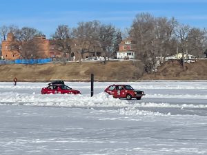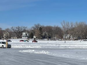 Madison Lake Ice Course Ice Road Course Lifetime Track #2,682 THE EVENT Editor’s note: With today’s ice track in the books I have now seen racing at 120 ice racing locations. That’s been done on location at 23 different states, provinces and countries. My total is nearly twice as many as my next nearest fellow competitor. I’ve seen several of those ice tracks with Wisconsin trackchaser, now deceased, Ed Esser. As a matter of fact, when Ed and I came to an IIRA ice race years ago Ed got a “ride around” in one of the cars that was racing on the ice today. It’s a small world! You’ll see this car on the ice today at #19. I know some of you have been reading and hopefully enjoying my Trackchaser Reports for well over two decades. You might think that I have shared the story from just about every track I have visited with you. This statistic might blow your mind. Today, with my sharing the experience from Madison Lake, Minnesota I have now posted reviews from exactly 50% of all of the tracks I have visited. Ya, I know! I AM A TRACKCHASER. My name is Randy Lewis (above with Ohio kart racer, Dallas Rose). I live out in San Clemente, California. We’re only 74 miles north of the Mexican border. I’m not sure a person could pick a more inconvenient location in the continental United States if they wanted to be a world-class trackchaser. My residential location virtually assures the idea that I must fly to virtually every track I visit. I am a “trackchaser”. I trackchase. Have you ever in your life heard of “trackchasing”? I didn’t think so. Trackchasing for me is all about three things. First, I enjoy auto racing. Secondly, my hobby requires a good deal of overnight travel. When I venture out to see a race at a track I’ve never seen before I do not want my trip limited to racing only. The very last thing I want when I’m done trackchasing is to have memories of only racing. I want to take some time to see the local attractions of wherever I might be visiting. Those visits in many cases will provide more long-lasting memories than whatever I saw on the track. Finally, I want to create a logistical plan that allows me to accomplish the two points mentioned above without depleting my retirement account. That’s trackchasing for me. Hundreds of trackchasers have stopped for a moment to create their own personal trackchasing list. I think that is great. However, I will tell you that no one has ever taken trackchasing more seriously than I have. Do I have any data to back up that assertion? I do. To date, I have seen auto racing in 85 countries at more than 2,680 different tracks. Does that sound serious to you? I’ve been able to see the world doing this. If you’re interested in exactly what I’ve been able to experience all around the U.S. and the world I recommend you click on this link. Trackchasing Tourist Attractions After each and every event that I attend I post a YouTube video, a SmugMug photo album and a very detailed Trackchaser Report about the experience on my website at www.randylewis.org. My trackchasing contributions generate a good deal of interest in what I am doing. My YouTube channel (ranlay) has more than 1.3 million views. My website gets more than 20,000 views every month. Because I have seen racing in 85 countries at this point I am considered the World’s #1 Trackchaser. That’s good enough for me. Now I encourage you to drop down a few spaces and read about today’s trackchasing adventure. As you discover what went on at this track just think about the idea that I’ve done this nearly 2,700 times. I don’t mind admitting I am addicted to the hobby of trackchasing. It’s just fun! If you’re interested in looking back and seeing where I’ve been the following link is for you. If you’ve got a question, comment or whatever please leave it at the bottom of this report. It’s very easy to do. Or you can visit me on Facebook. Thanks! FOREWORD Saturday, February 27, 2021. This is the last weekend of February. It is also likely the last weekend for ice racing in the United States. Each year ice racers take to frozen lakes during the months of January and February. Once the ice gets to be about 15 inches thick or more a frozen lake is ready to hold ice racing. I had a rather ambitious ice trackchasing plan for this weekend. However, as temperatures warmed up one ice racing organization after another canceled their events. In all likelihood, those groups were canceling the rest of their ice racing seasons as well. Earlier this week the folks who ice race out in South Dakota canceled their season. Then the Central Wisconsin Ice Racing Association, the Northern Wisconsin Ice Racing Association and the Southern Wisconsin Ice Racing Association all canceled their shows. I’ve got to give the organizers of ice racing some credit. They are an optimistic bunch. Despite past conditions and sometimes warm upcoming forecasts they always seem to say that they are going to race. Then as we get closer to the scheduled event, often within just hours of the outing, the cancellations come flying. That’s what happened to me this weekend. However, there was one organization, the International Ice Racing Association (IIRA), that hung in there. IIRA said they were going to race and they did. That was great news for me. Last night I trackchased at a facility with the unlikely name of the “OK Corral” (above) in Harrah, Oklahoma. Then this morning I hopped on a 7 a.m. flight from Oklahoma City to Minneapolis. From Minneapolis, it was a quick one-hour and 20-minute drive down to Madison Lake, Minnesota. Over the past few weeks, I’ve been in contact with Brad Johnson, IIRA rules chairman and promoter. I first met Brad several years ago at one of the several IIRA race locations I’ve visited over the years. This winter Brad has been very receptive at giving me updates on when his group was planning to race and where they would race. It was only this weekend