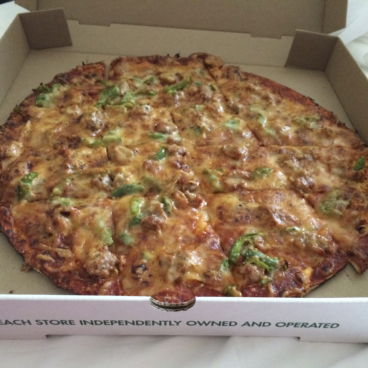 I did order one very expensive pizza for consumption during the game. It was from a famous place in St. Louis called Imo’s. It wasn’t too my liking. The cheese tasted like it was sprayed on from a can. Nevertheless, at a net cost of about $25 U.S. I felt compelled to eat the whole thing!